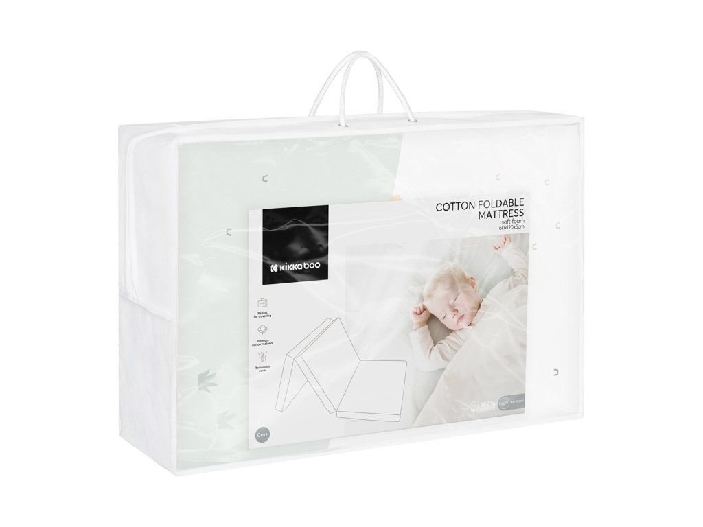 Skládací matrace KikkaBoo je navržena tak, aby nabídla dítěti pohodlí a rodičům maximální praktičnost. Výplň z kvalitní polyuretanové pěny poskytuje rovnoměrnou oporu při spánku, zatímco možnost složení umožňuje snadné přenášení a úsporu místa při skladování.