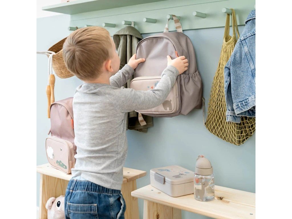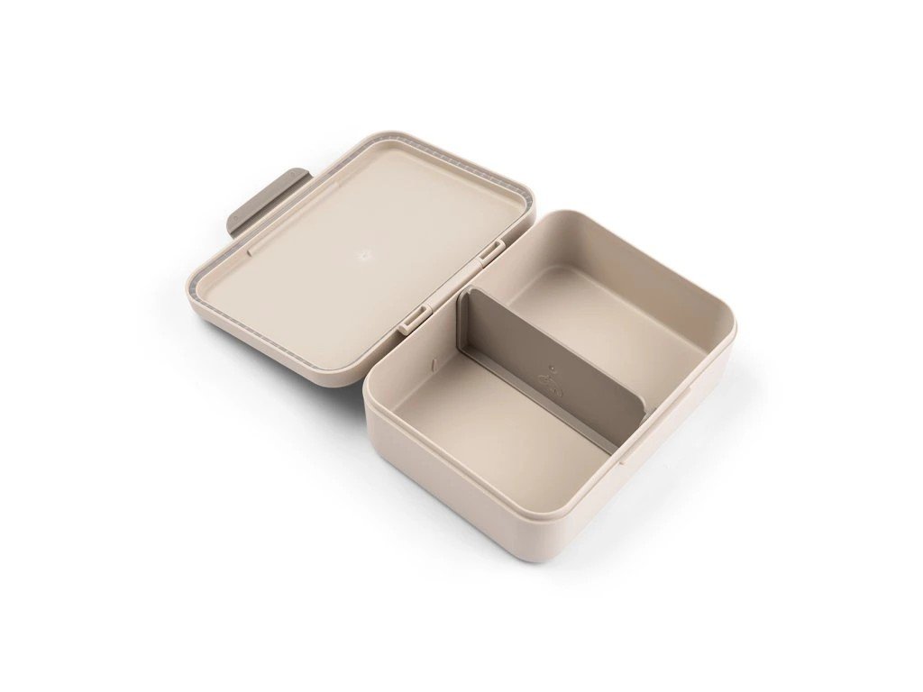 Uvnitř najdete chytrou přepážku s různými možnostmi umístění, díky které můžete svačinu rozdělit – třeba na ovoce a pečivo, sušenky a zeleninu nebo sendvič a malou dobrotu. Krabička je v jemné pískové barvě a zdobí ji roztomilý motiv Birdee, Elphee a Lalee, kteří udělají z každé svačiny o kousek větší radost.