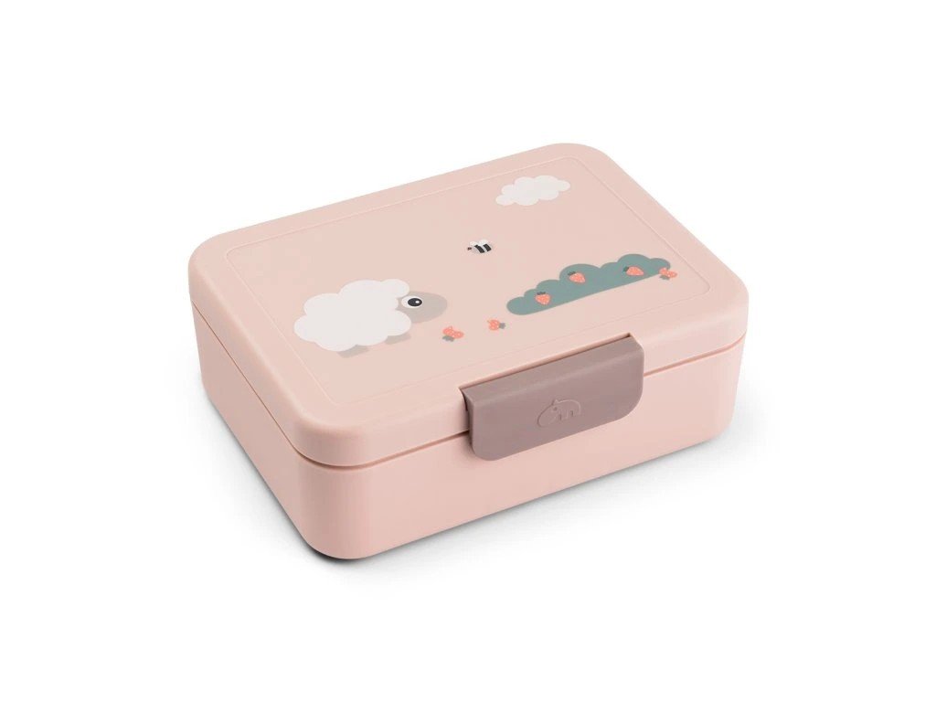 Uvnitř najdete chytrou přepážku s různými možnostmi umístění, díky které můžete svačinu rozdělit – třeba na ovoce a pečivo, sušenky a zeleninu nebo sendvič a malou dobrotu. Jemná růžová barva a roztomilý motiv Sheepy udělají z každé svačiny malý rituál, na který se děti těší.