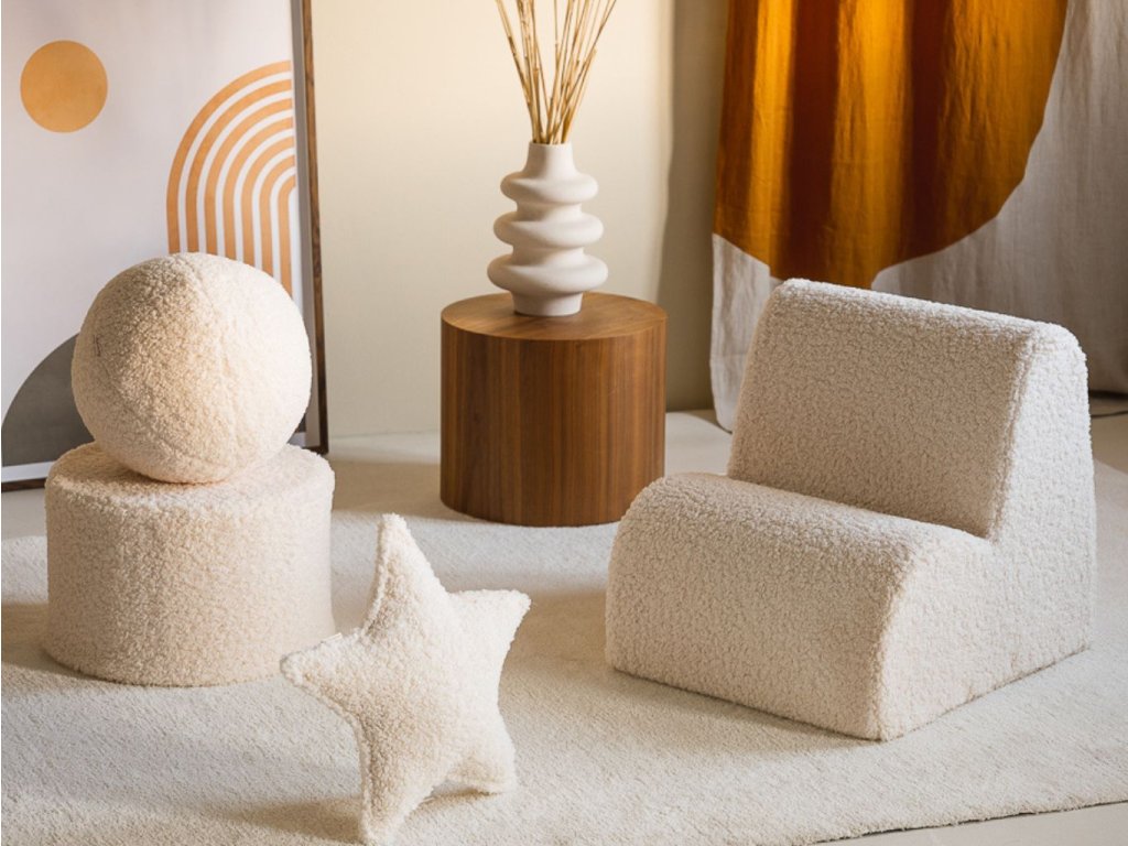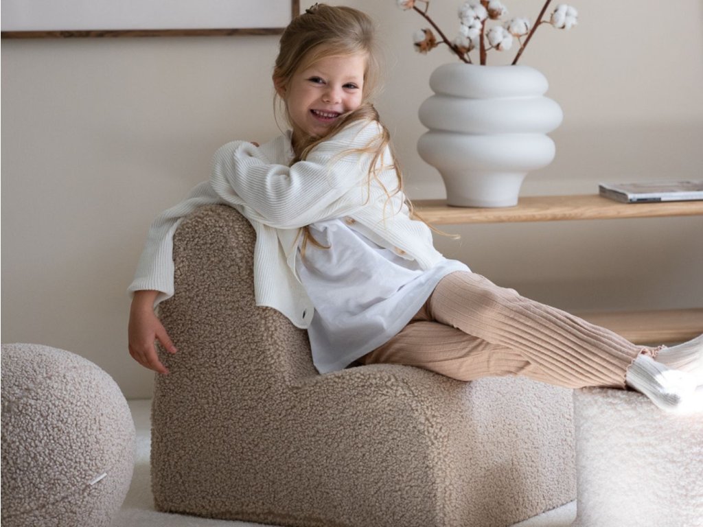 Křesílko, které vypadá jako obláček – a stejně tak se na něm i sedí. Wigiwama Cloud Chair v teddy provedení je navržené pro malé děti jako jejich vlastní pohodlné místo, kde si mohou číst, koukat na pohádky nebo jen tak odpočívat. Nadýchaný tvar zútulní pokojíček a zároveň nabídne stabilní sezení pro každodenní používání.