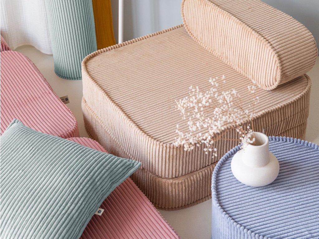 V nabídce Wigiwama najdete především modulární dětské pohovky a play sofa, sedací vaky, pufy, měkké herní sety a doplňky (polštáře apod.) – tedy kousky, které děti využijí na čtení, odpočinek i stavění a kreativní hraní. Mnohé produkty mají snímatelné a pratelné potahy, takže jsou praktické pro každodenní rodinný provoz. (Wigiwama)