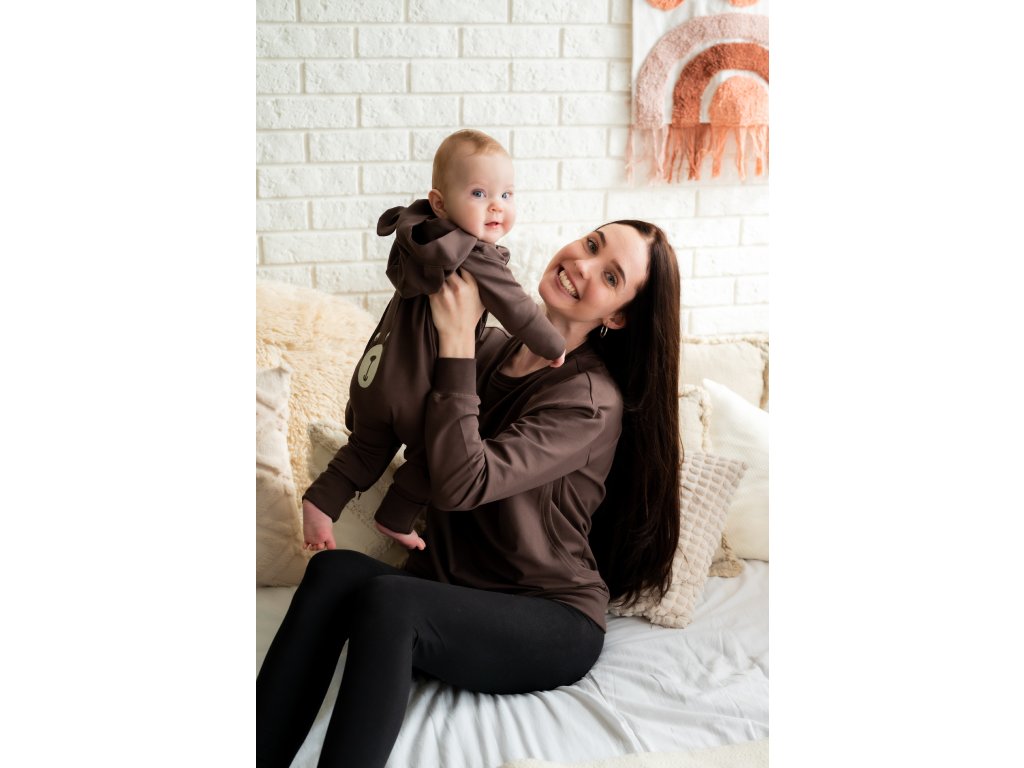 Krátký střih mikiny končí přibližně v oblasti boků a působí moderně a žensky. Mikina je dostatečně prostorná, takže ji lze pohodlně nosit už během těhotenství a následně po celou dobu kojení i mateřství. Střih je navržen tak, aby lichotil každé postavě a poskytoval maximální volnost pohybu.