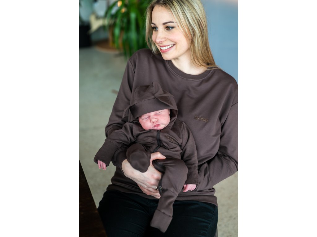 Kojící mikina Moniel byla vyvinuta ve spolupráci s certifikovanými laktačními poradkyněmi, dulami a porodními asistentkami, s důrazem na funkčnost, pohodlí a potřeby maminek. Je ručně šitá v České republice z přírodních materiálů a je vhodná pro nošení po celý rok – od chladnějších večerů až po zimní měsíce.