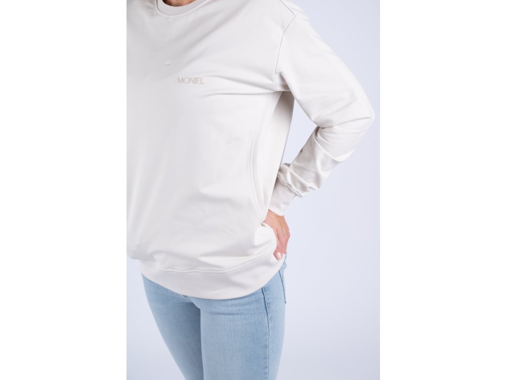 Krátký střih mikiny končí přibližně v oblasti boků a působí moderně a žensky. Mikina je dostatečně prostorná, takže ji lze pohodlně nosit už během těhotenství a následně po celou dobu kojení i mateřství. Střih je navržen tak, aby lichotil každé postavě a poskytoval maximální volnost pohybu.