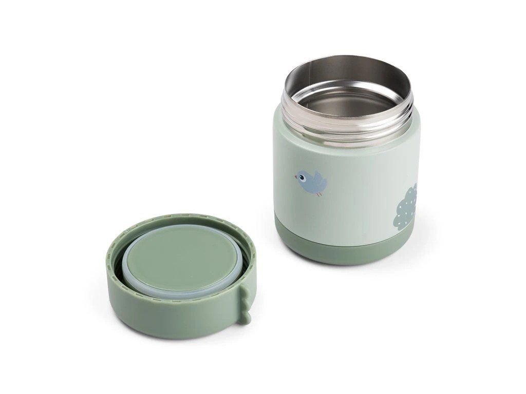 Silikonové těsnění zajišťuje, že je nádoba vzduchotěsná a nepropustná, takže se nemusíte bát vylití v batůžku. Díky termoizolačnímu provedení udrží jídlo teplé nebo chladné až 6 hodin – teplota se přitom mění postupně, takže obsah zůstává dlouho „tak akorát“. Zelená barva a motiv Croco a Birdee dodají svačině hravost a dětem usnadní, že si svou termonádobu rychle poznají.