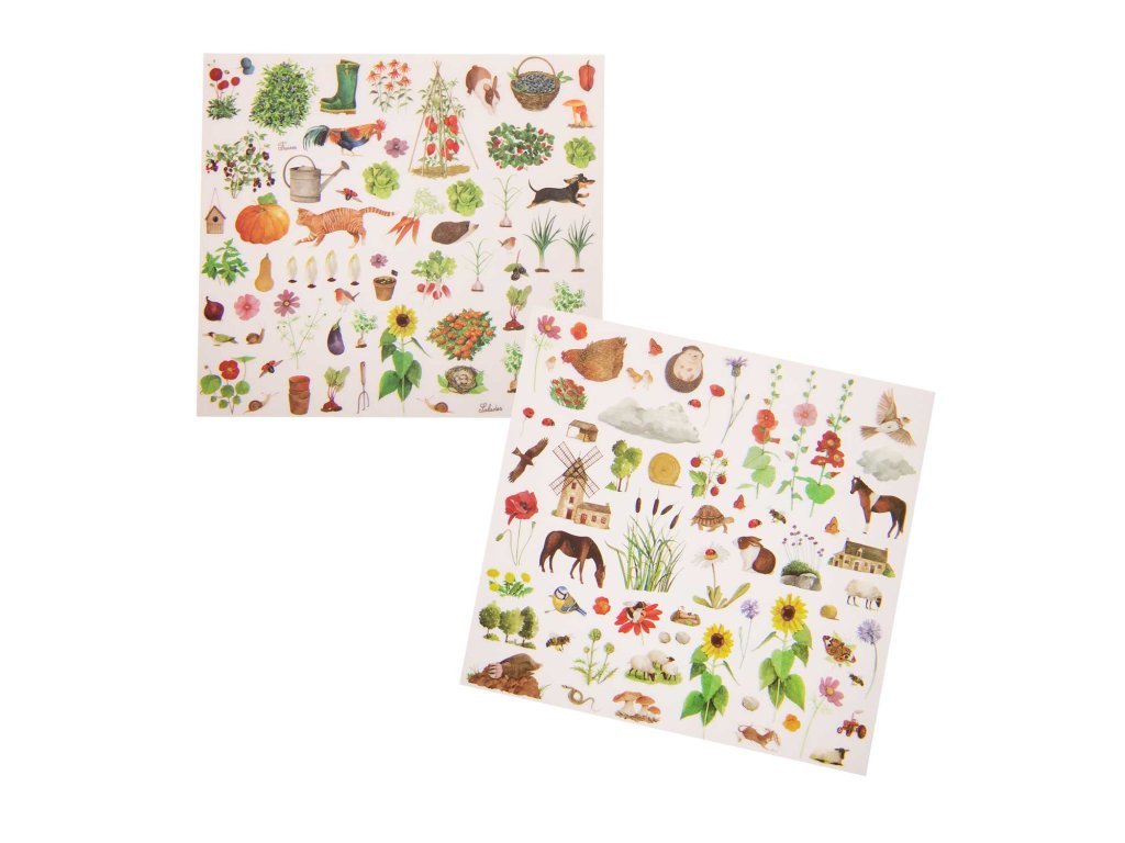 Sada obsahuje 2 velké ilustrované scény, do kterých děti doplňují motivy ze zahrady podle své fantazie. Tvoření je čisté, přehledné a ideální i na cesty – bez nůžek, lepidla a drobných dílků. Aktivita podporuje kreativitu, trpělivost, soustředění a jemnou motoriku, a navíc je skvělá i jako dárek pro děti, které milují kreslení a přírodu.