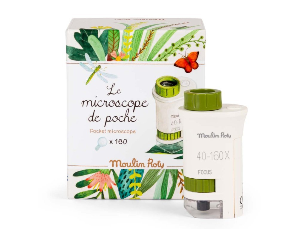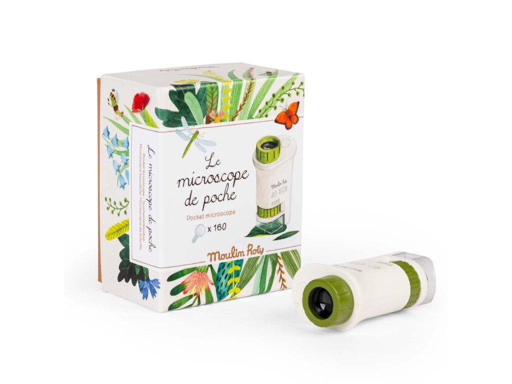Někdy stačí jen změnit úhel pohledu – a obyčejná procházka se promění v opravdovou výpravu. Kapesní mikroskop z kolekce Le Jardin du Moulin otevírá dětem dveře do světa, který pouhým okem často nevidíme. Zblízka si mohou prohlédnout strukturu listů, povrch kamínků, drobné detaily na větvičkách nebo fascinující „mikrosvět“ hmyzu.